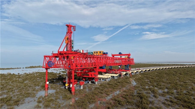在沙特紅海沿岸,由中國港灣承建的拉赫克島連接路與跨海橋工程項目主線橋梁穿越約3萬平方米紅樹林保護區,傳統施工極易破壞生態,項目負責人李偉偉堅定表示:“項目建成後,將進一步完善沙特紅海拉赫克島及周邊區域交通網絡,我們既要打通發展通道,更要守住這片綠色屏障,我們必須用中國智造破解難題。”