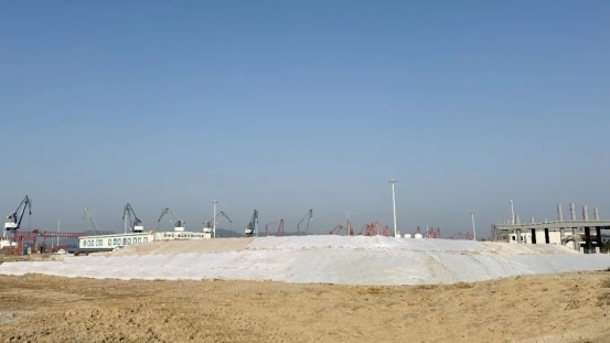 共工社2月25日电 题:阳江港海陵湾港区吉树作业区15号通用泊位码头项目堆载预压施工完成